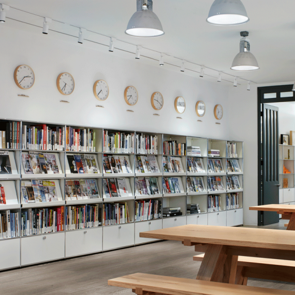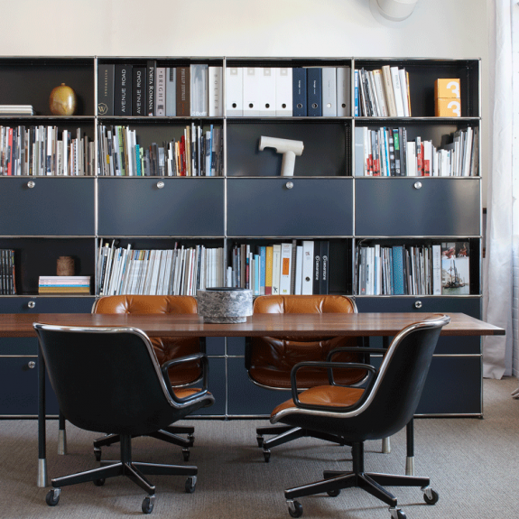 Es una solución modular de almacenamiento para la oficina. La biblioteca se ofrece en diferentes formas, tamaños y acabados. El sistema puede construirse en cualquier dirección, desmontarse y reconfigurarse para cambiar los requisitos. Las unidades de muebles se pueden personalizar aún más por aplicación mediante la adición de puertas, cajones y una variedad de accesorios internos de la organización. Disponible en distintas modulaciones, colores y tamaños.