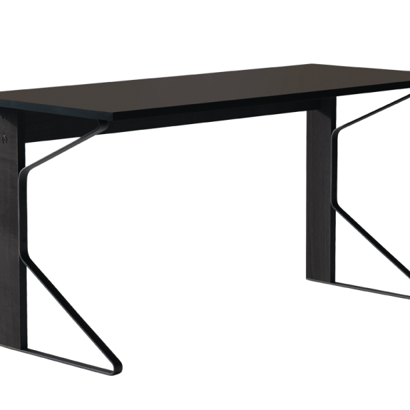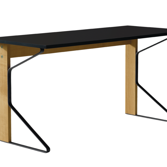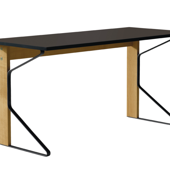 De contorno ligero y fluido, se apoya en un único pilar central. Debe su estabilidad a la banda de acero simple que se despliega en cuatro alas alrededor de su base. El pilar está hecho de roble y la superficie de la mesa está disponible en una variedad de acabados. Son adecuadas tanto para el hogar como para el público. Este escritorio ofrece el lugar ideal para trabajar.