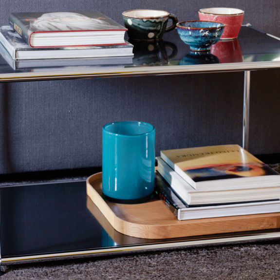 Es una solución modular de mesas bajas para el hogar. La mesa lateral se ofrece en diferentes formas, tamaños y acabados. El sistema puede construirse en cualquier dirección, desmontarse y reconfigurarse para cambiar los requisitos. Las unidades de muebles se pueden personalizar aún más por aplicación mediante la adición de puertas, cajones y una variedad de accesorios internos de la organización. Disponible en distintas modulaciones, colores y tamaños.