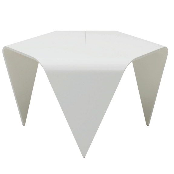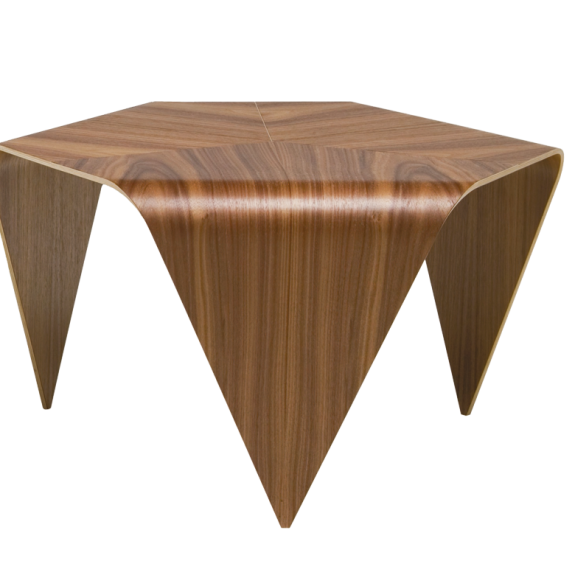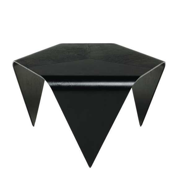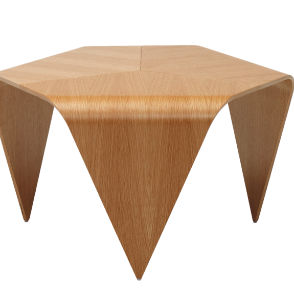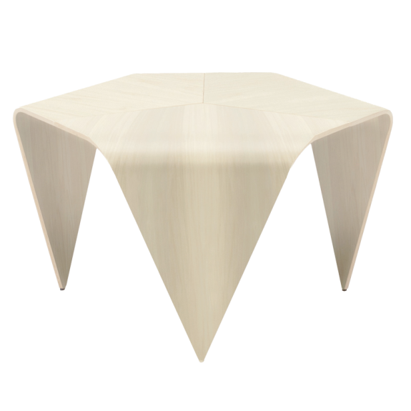 Mesa formada por tres hojas de chapa de abedul prensada. Diseñado por Ilmari Tapiovaara en la década de 1950. La parte superior de la mesa hexagonal se apoya en tres patas triangulares y las costuras entre las piezas crean un hermoso patrón en la parte superior de la mesa. Ligera y fácil de transportar, Trienna Table es elegante por sí misma o como una pieza central fina para crear combinaciones fascinantes