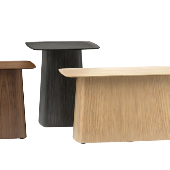 Esros estilizados tableros presentan un reborde ligeramente curvado que les confiere un elegante aire japonés. Estas ligeras mesas auxiliares están disponibles en tres tamaños con chapa de roble natural, roble oscuro o nogal.