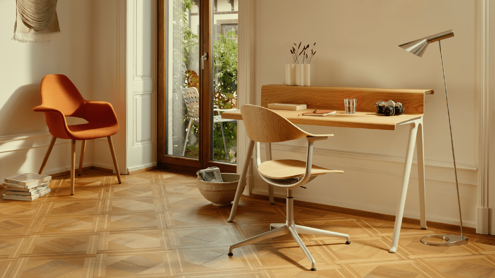 R: -El diseño recoge mis treinta años de experiencia. Pero hubo una influencia específica: el escritorio Compas Direction de Jean Prouvé, de 1953, con sus icónicas patas en forma de V. Simplificamos aún más la geometría, buscando alcanzar una armonía en la composición suave, como en la música, donde una voz y una guitarra pueden crear una melodía hermosa.