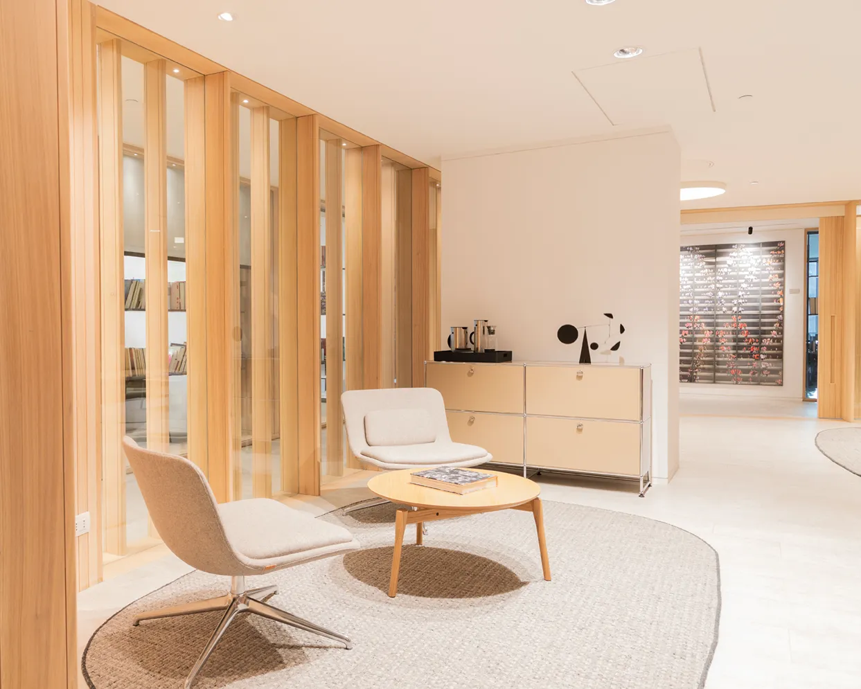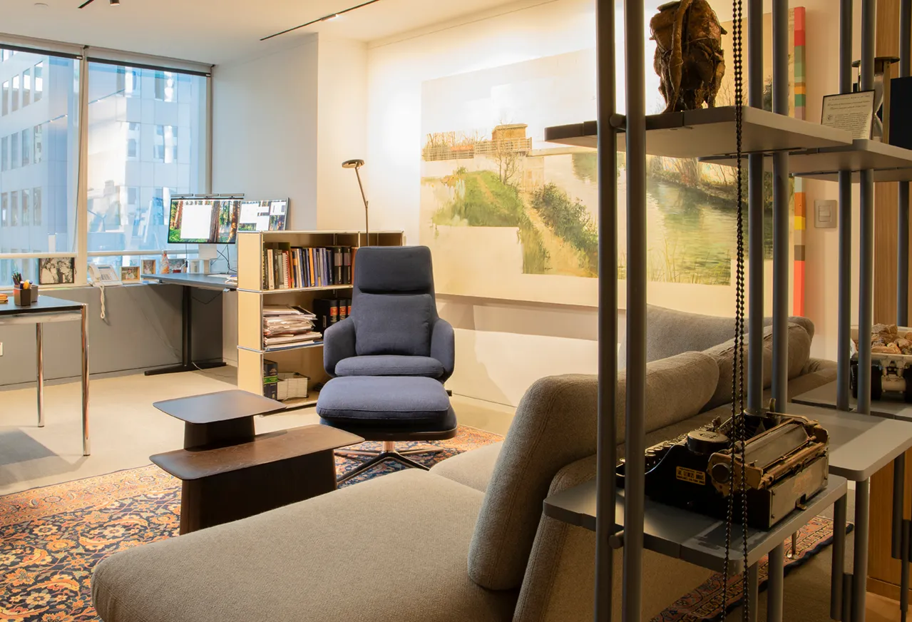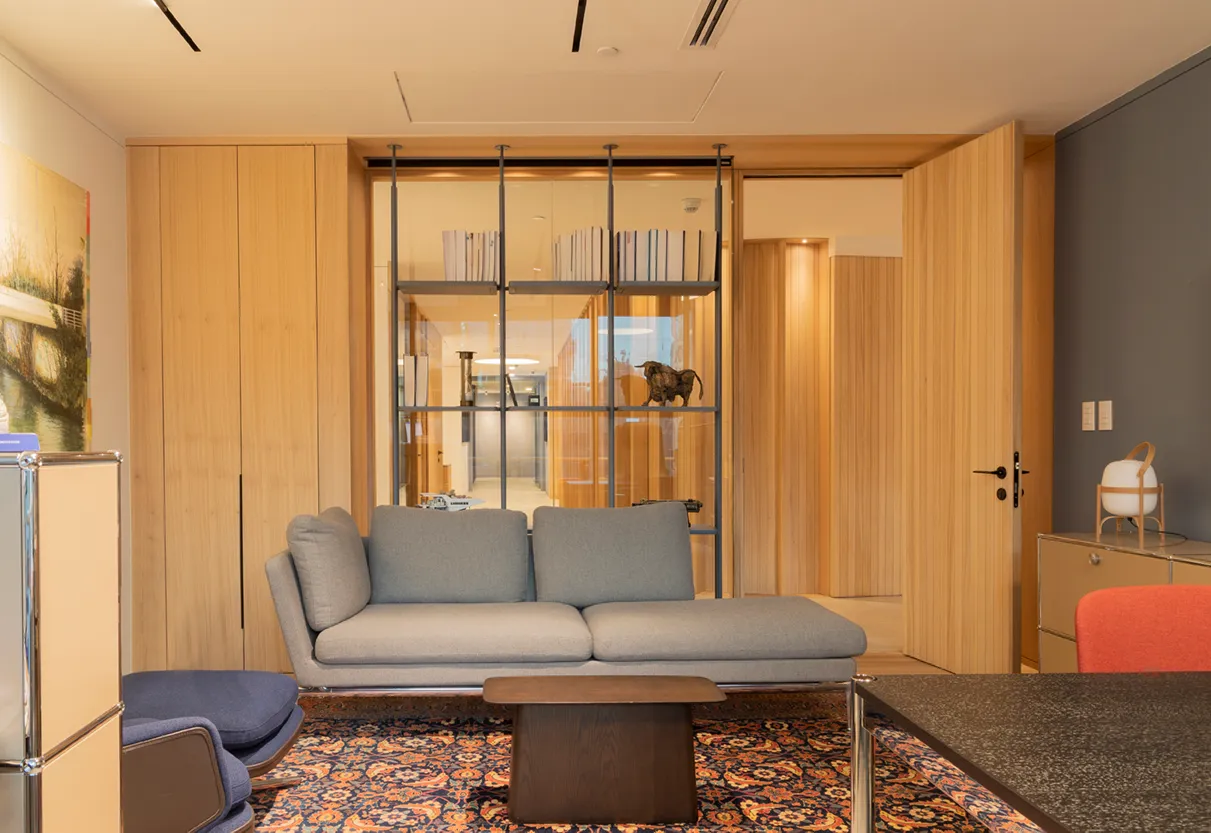Las Condes, Santiago, Chile. Año instalación 2024-2025. Arquitectos Santiago Raby. Interiorismo | El proyecto para las oficinas de Jana & Gil consistió en la intervención de un gran estar y algunas oficinas. Las marcas Vitra, USM y esPattio, que A-cero representa de forma exclusiva, se hacen presente, logrando espacios muy atractivos y elegantes, y, a la vez, cálidos y acogedores. Destacan, entre otros, los sofás Suita, Gran Relax, Gran Executive, el escritorio Tyde, sumados a las Wooden Side Table (todos de Vitra), las diversas configuraciones del sistema modular USM y el Sillón Glove Lounge y la Mesa Bow Lounge de la marca española esPattio. |
