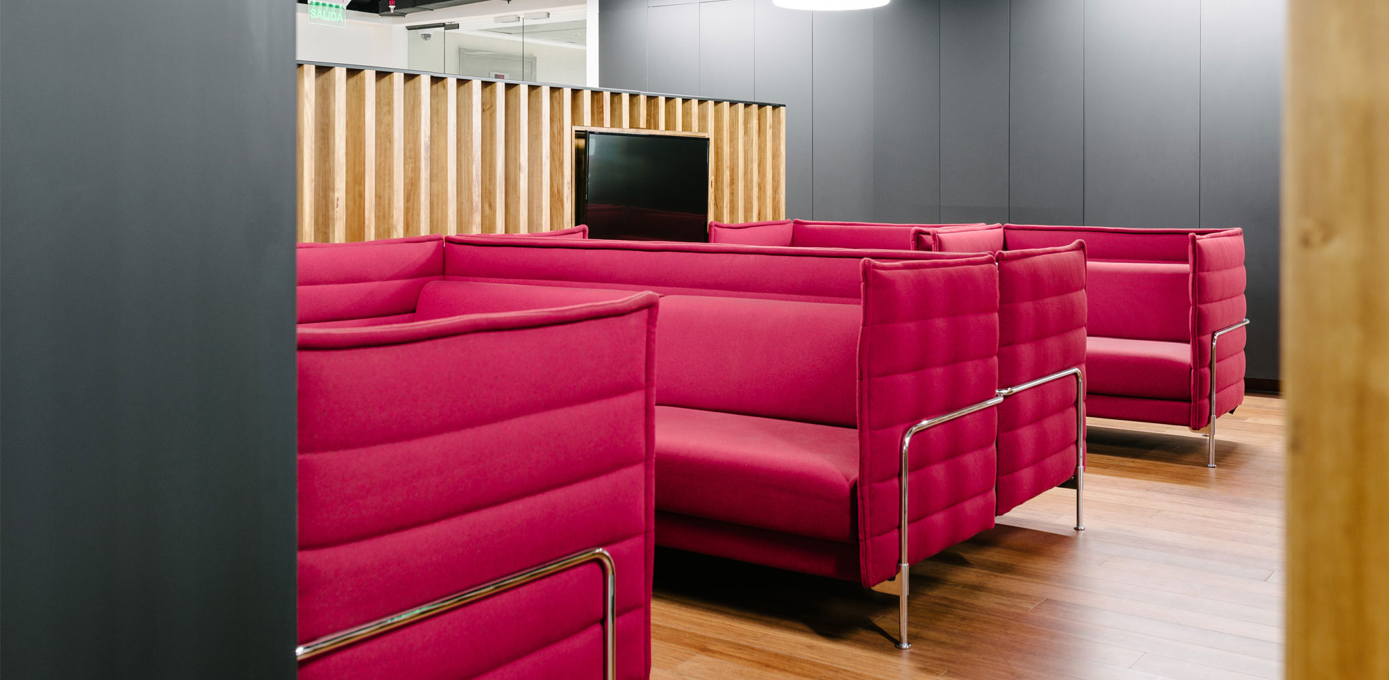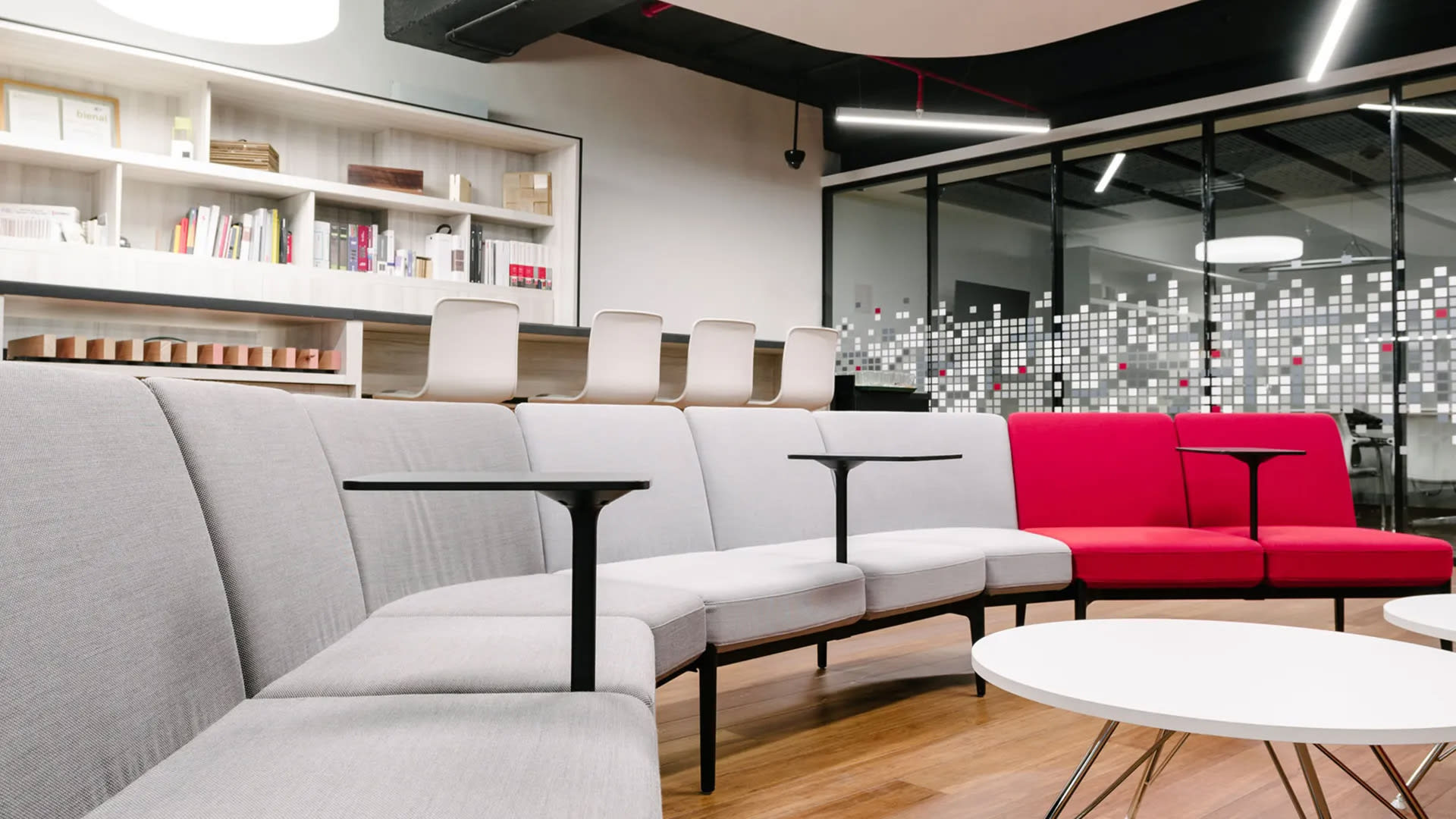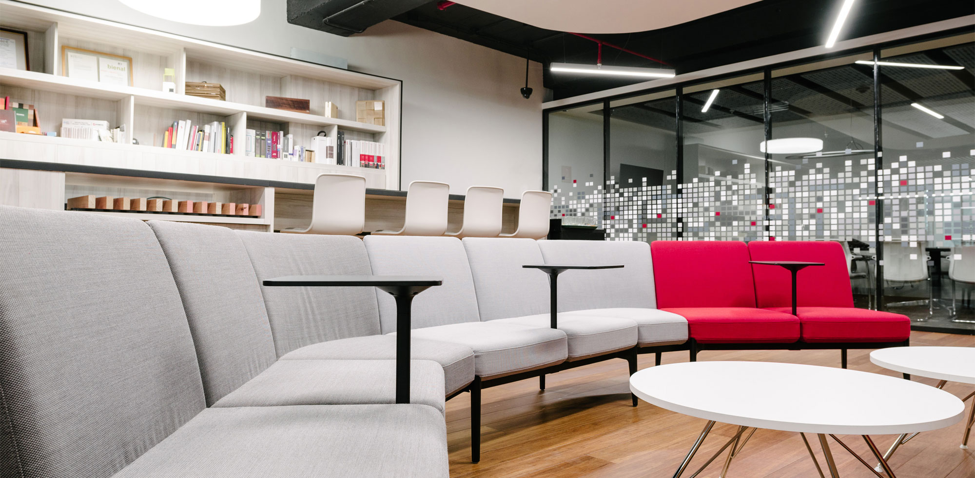 | Ubicación Bombero Ossa #1068, Work Café y piso 10°, Santiago, Chile Año instalación 2017 Work Café Arquitectos Del Sante Decoración e Interiorismos Jaime Uauy Piso 10 Arquitectos Del Sante Decoración e Interiorismo Valentina García | En este proyecto, la asesoría e implementación mobiliaria consistió en la intervención de los siguientes espacios: co-work, co-work café, salas de espera, oficinas gerente senior, gerente adjunto, sala de reuniones, salas de presentación. Algunos de los productos seleccionados para ambientar cada uno de estos espacios fueron: USM Haller, Belux Lamp, Suita Sofa, escritorio Haller Advanced, ID Trim Chair, Gueridon Bas, Soft Shell Chair, Visiona Stool, Alcove Sofa, Social Sofa, entre otros. Todos en su conjunto le entregan un carácter moderno, alegre y funcional. |