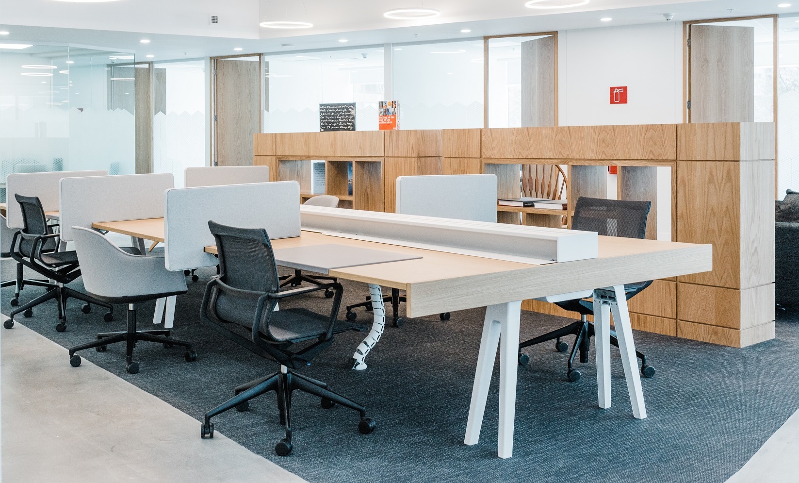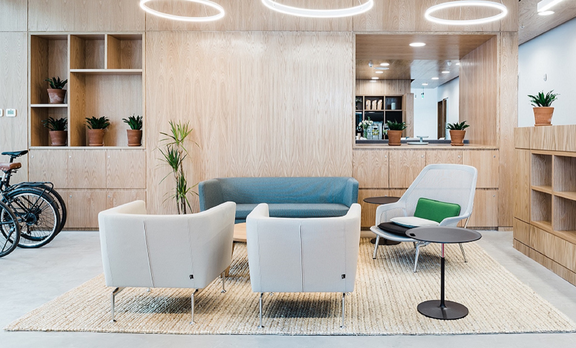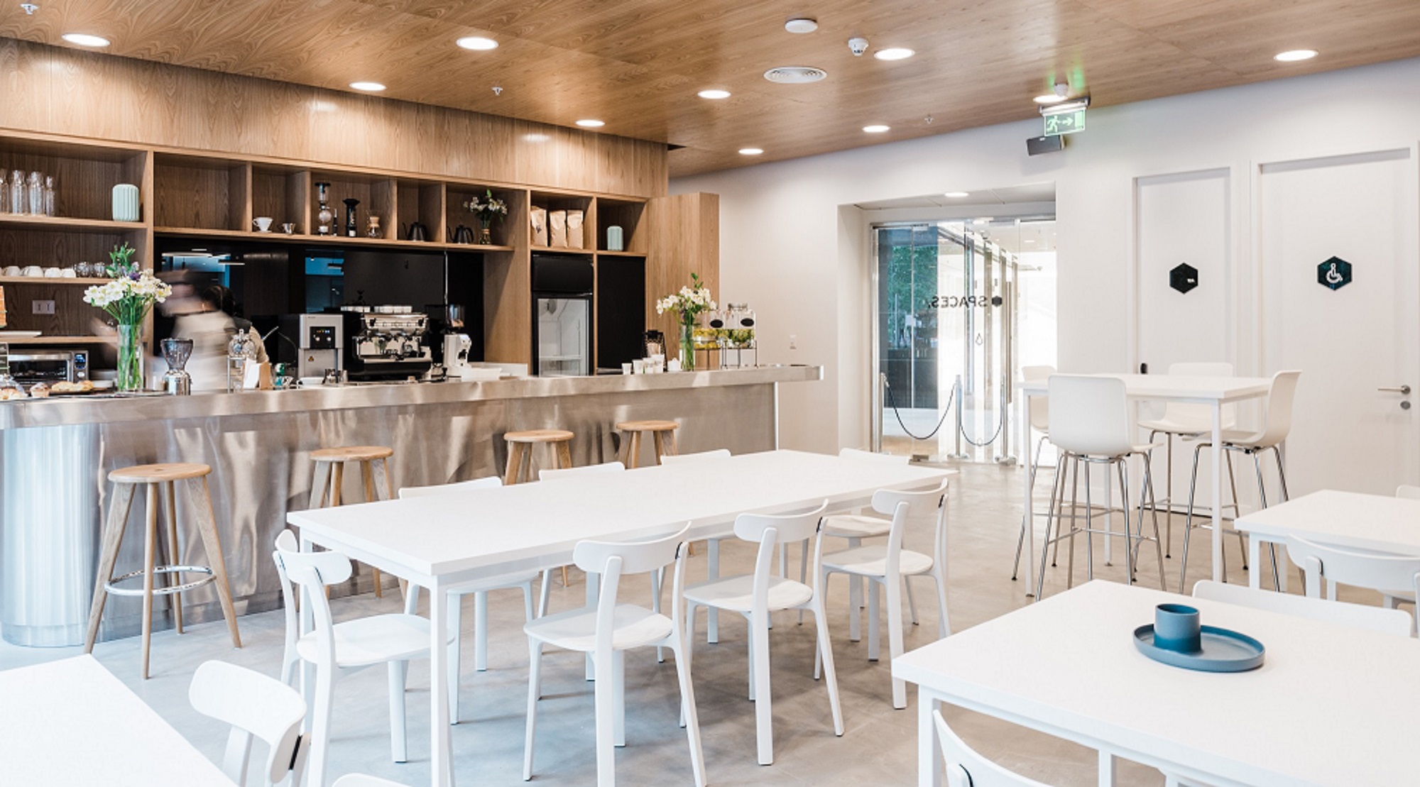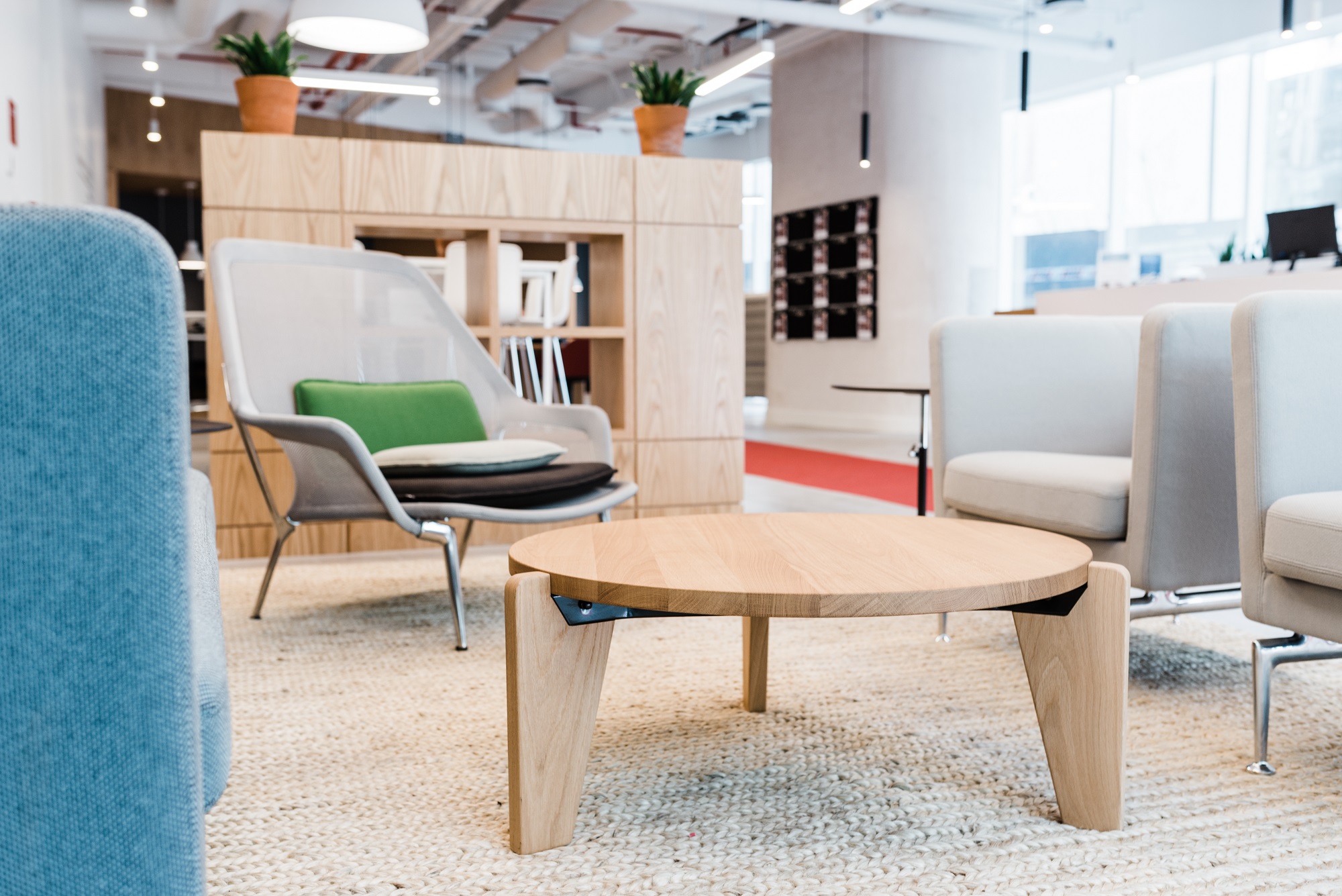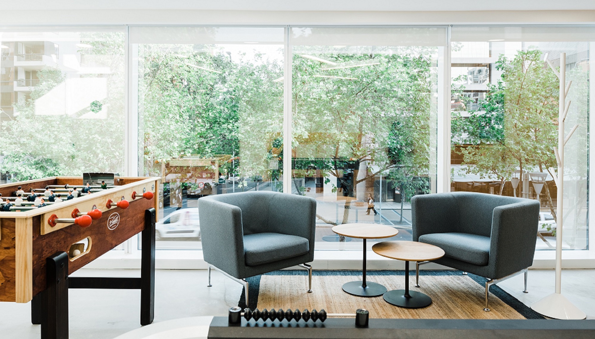El Bosque Norte 0211, El Golf, Las Condes. Año instalación 2018. Arquitecto Workplaces, Bárbara Maccawley. | El proyecto Torre Isidora Spaces se sumó con una innovadora propuesta de mobiliario a los work places del barrio El Golf. La asesoría e implementación de muebles consistió en la intervención de varios espacios de la planta 1, 2 y 3; desde la recepción, open co- working, café bar, quiet place, salas de reuniones, zona de juegos y áreas de esparcimiento. La marca Vitra cobra máximo protagonismo en este lugar. Destacan la categoría sillería con Physix, Soft Shell, Unix, Hall Studio, Organic, All Plasti, Hal Stool y Slow. También de la línea Suita el Armchair y el Club Sofa; taburete Haut y las mesas Rise, Gueridon Bas y Occasional Low. Por último varios Alcove Sofa en la recepción creando micro ambientes. |