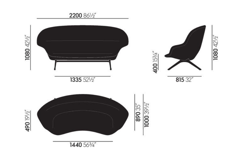 El icónico Abalon Sofa, que toma su nombre de la concha de un caracol marino, tiene una forma curvada, orgánica, que evoca un círculo hacia el que las personas se sienten traídas. El asiento, cómodamente acolchado, ofrece un lugar para el recogimiento y puede acomodar generosamente hasta a tres personas.