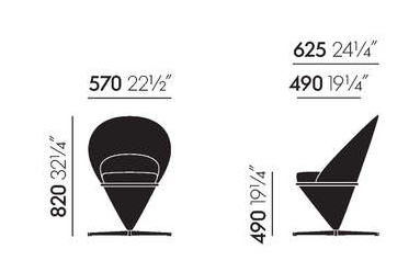 Verner Panton diseñó originalmente la Cone Chair para un restaurante de Dinamarca. Toma su forma de la figura geométrica clásica que le da su nombre. La carcasa acolchada forma el respaldo y los reposabrazos y, junto con el suave cojín de asiento, crea un sillón excepcionalmente cómodo que va montado sobre una elegante base de acero inoxidable.
