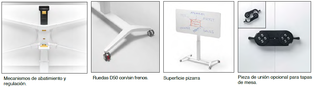 Dimmer destaca no sólo por su adaptabilidad, sino también por su amplia funcionalidad. Además, una amplia gama de combinaciones define a esta mesa móvil como un elemento idóneo que casa con cualquier entorno profesional.