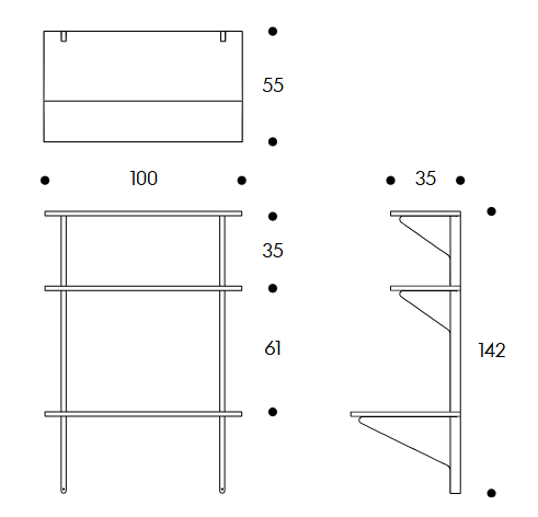 Estas estanterías de pared se completan con un escritorio, lo que ofrece una unidad compacta para la oficina en casa. Combinando soportes de pared de roble macizo natural con la sencilla banda de acero curvada que caracteriza a la colección Kaari, las estanterías tienen una superficie de HPL brillante, mientras que el escritorio tiene un acabado de linóleo para una superficie de trabajo cómoda. El ancho adicional ofrece espacio para trabajar en equipo o para distribuir papeles, planos y archivos.