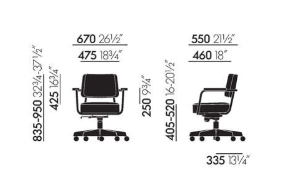 El asiento giratorio de la Fauteuil Direction Pivotant es de altura regulable y el mecanismo de inclinación del respaldo puede adaptarse al peso de cada usuario. Estas características se combinan con un generoso acolchado que garantiza un confort supremo. La tapicería de cuero o tela está disponible en distintos colores, lo que permite encontrar la silla ideal para cualquier tipo de puesto de trabajo en la empresa o en la oficina doméstica.