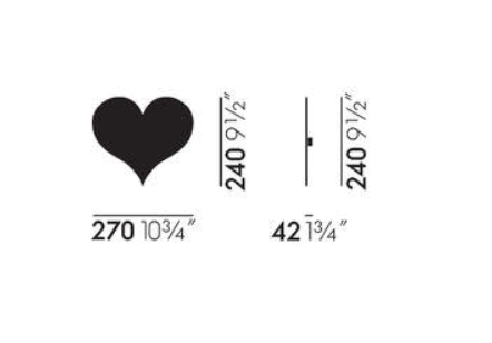 Los Metal Wall Reliefs son ejemplos de decoraciones murales creadas por Alexander Girard para diversos proyectos de diseño de interiores, como el restaurante The Compound, distintas exposiciones y para su propia casa de Santa Fe. El corazón es uno de los símbolos más frecuentes de su trabajo, y lo utiliza como motivo recurrente en tejidos y fundas de cojines, como elemento mural decorativo y en muchos otros casos. En colaboración con la familia Girard, Vitra ha seleccionado varios de los motivos originales para estos relieves, que están fabricados con resistentes materiales metálicos.