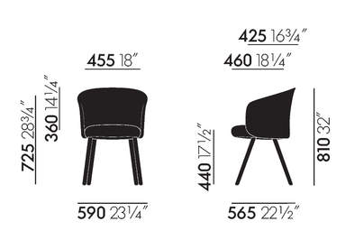 Mikado está disponible en dos variantes: sillón y silla auxiliar. En el sillón, los laterales del respaldo redondeado se prolongan hacia delante para hacer las veces de reposabrazos.