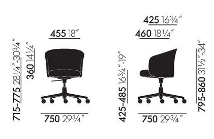 Disponible en diferentes bases: 4 patas de madera, 4 patas de aluminio revestida o pulida, base de 5 radios con ruedas y 4 radios con deslizadores.