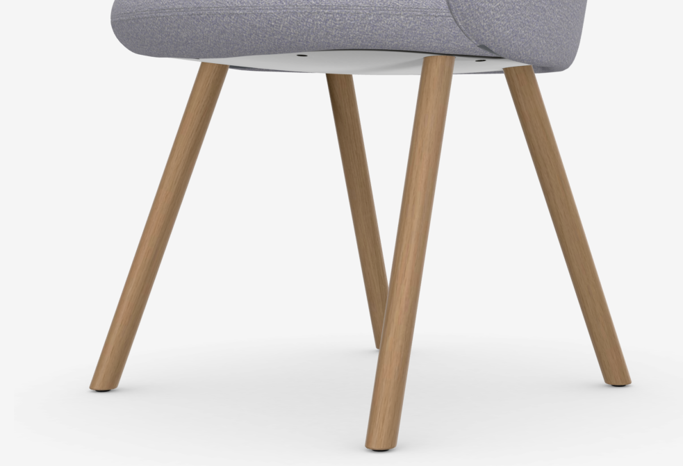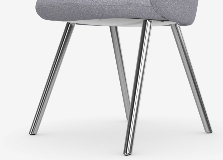 Las fundas de la silla Mikado no están encoladas y se pueden extraer para su limpieza o sustitución. Las patas pueden sustituirse por separado o cambiarse por otra opción de un material diferente, como madera o aluminio reciclado. El panel interior del asiento tiene una gran proporción de aluminio reciclado y la carcasa del respaldo es de polipropileno reciclado posconsumo, que puede separarse fácilmente del relleno de espuma durante el reciclado. El concepto de un simple intercambio de componentes confiere a Mikado versatilidad a largo plazo, lo que garantiza su longevidad.
