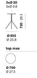 Gracias a su carácter veraniego y soleado, la colección de mesas Nolita está diseñada para momentos en compañía y relajación al aire libre. Mesa con base de tres radios de acero, que puede combinarse con sobres redondos de diferentes tamaños y acabados.