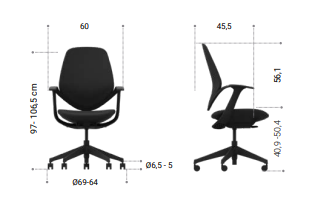 BRAZOS: La silla siempre va con brazos fijos, no tiene la opción de no llevarlos. Son realizados en poliamida con carga de vidrio y están rematados en su parte superior por una tapeta de polipropileno sin carga. Ofrecemos la opción de color negro y blanco (tapeta gris niebla).