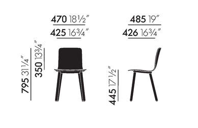 Las bases de las sillas son de metal o madera, sobre deslizadores como modelos de estudio o bien en versión alta como taburetes para bares y como solución para zonas de espera.