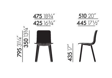 Las distintas bases de las sillas se pueden combinar con una carcasa de asiento de plástico (HAL y HAL RE), de madera contrachapada (HAL Ply) o con una carcasa ligeramente acolchada y revestida de tela (HAL Soft).