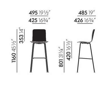 HAL Ply Stool High es un taburete clásico con carcasa de asiento de madera contrachapada de alta calidad y base de cuatro patas con refuerzos que sirve como opción de asiento cómoda para mesas de unos 110 cm de altura. Gracias a su discreto diseño, puede integrarse en distintos entornos, como bares, oficinas con mesas de reuniones o escritorios para trabajar de pie, o para la encimera de la cocina en casa.