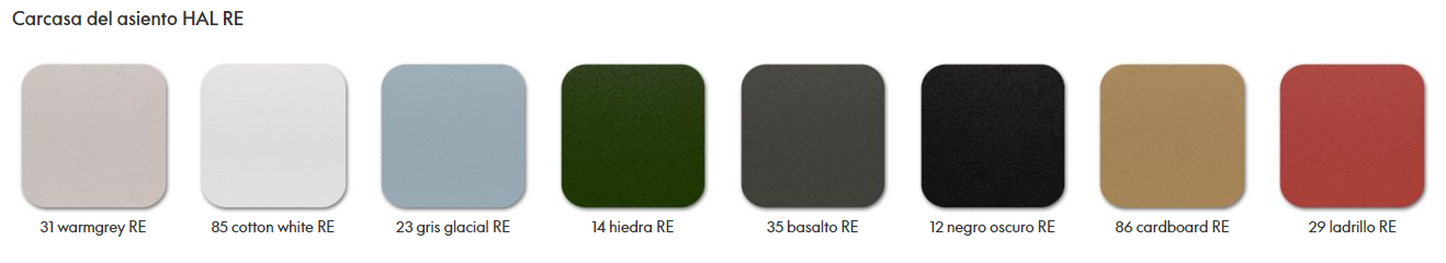 Debido a la composición del material reciclado, los distintos colores están salpicados con pequeñas motas de pigmento. Por el momento, en el nuevo material no se puede implementar el color blanco, pero se hará tan pronto como sea técnicamente posible. La carcasa de asiento de HAL RE también se puede reciclar al 100 % al final de la vida útil del producto.