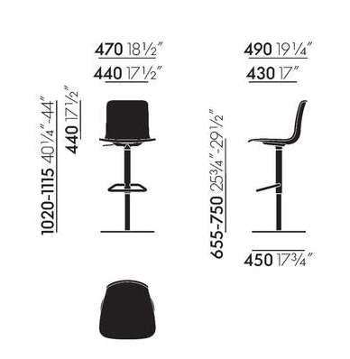 Las bases de las sillas son de metal o madera, sobre deslizadores como modelos de estudio o bien en versión alta como taburetes para bares y como solución para zonas de espera.