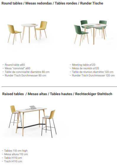Patas de madera maciza barnizada (barniz incoloro). La pata está compuesta por dos piezas, ensambladas mediante machihembrado encolado. El tramo de enlace con la estructura (espiga) está mecanizado mediante CNC 5 ejes. La fijación con la estructura es mecánica mediante tornillos al llevar la pata tuercas métricas colocadas en la espiga y en su base para el nivelador. La pata tiene una geometría variable partiendo en su base de una sección de 35x35mm hasta llegar en su tramo horizontal para unirse al tubo con una sección de 50x50mm. El haya es una madera semidura de densidad por encima de 700 kg/m3 . En cuanto al roble, éste tiene unas propiedades físicas de densidad 740 kg/m3 .