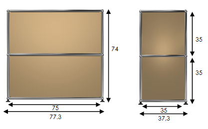 Compuesto por 2 módulos abiertos con paneles traseros y laterales.