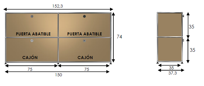 Compuesto por 2 módulos puerta abatible + 2 módulos cajón.